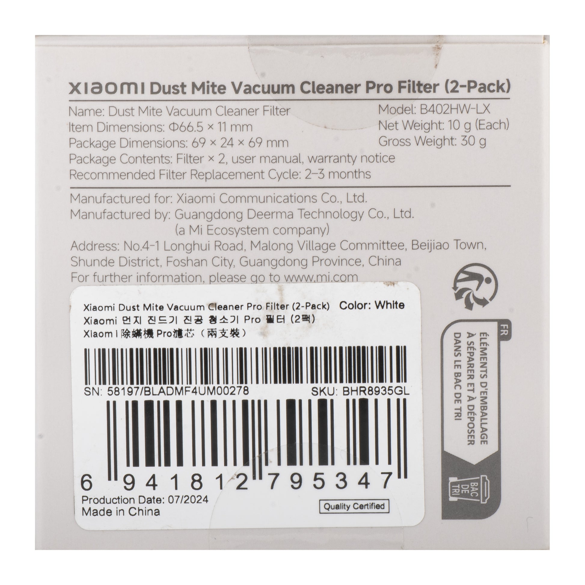The filter for Xiaomi Dust Mite Vacuum Cleaner Pro offers advanced multi-layer filtration,
