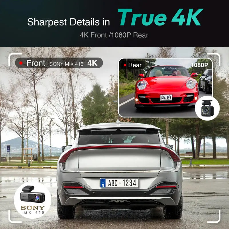 Capture every detail with impeccable clarity in 4K resolution on both front and rear cameras (1080P).