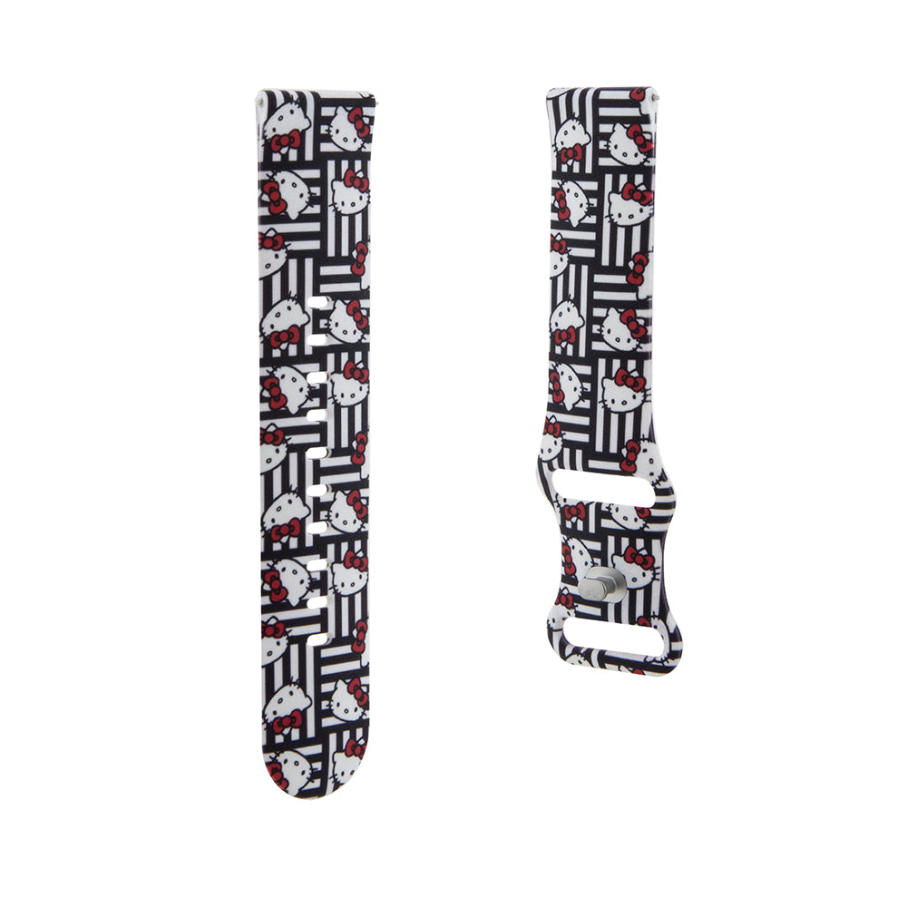 Hello Kitty Silicone Kitty Heads & Stripes Strap for Samsung Galaxy Watch / Huawei Watch Series, Black
