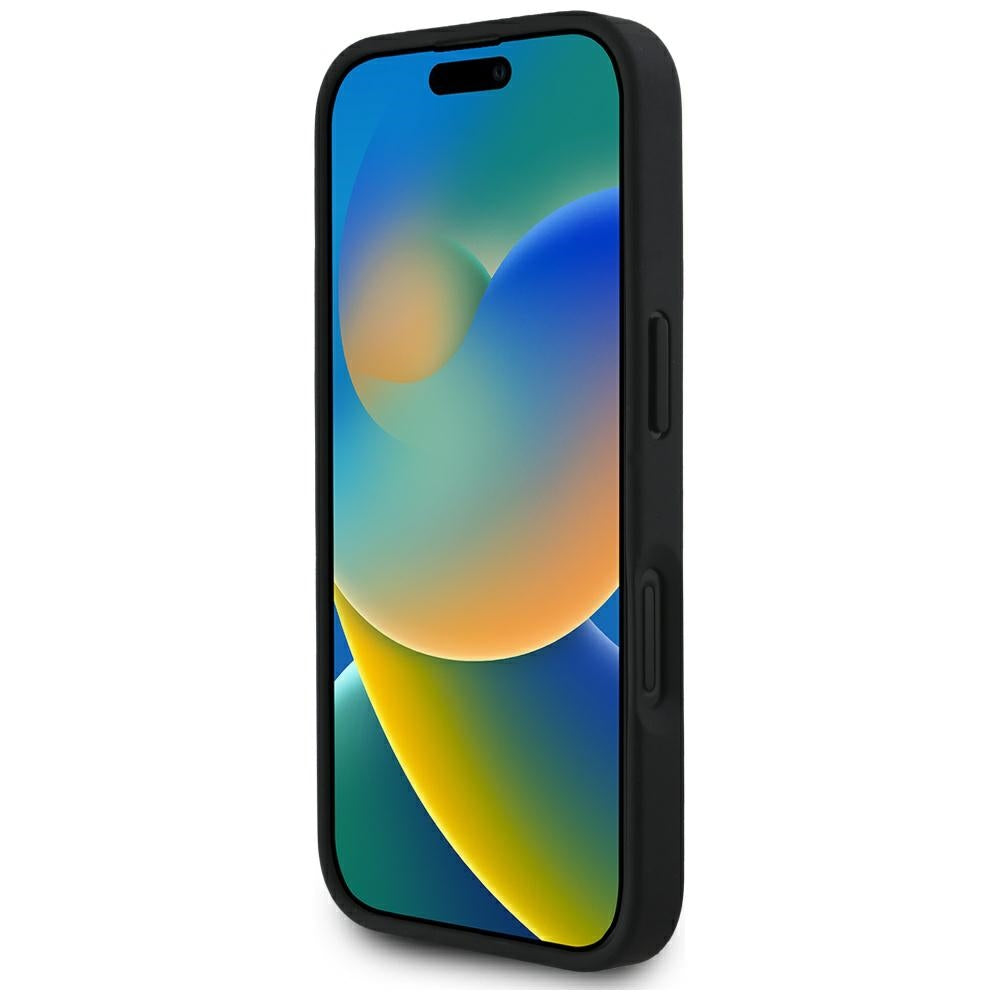 MagSafe Case for Apple iPhone 16, Guess, Peony Grained Hot Stamp Triangle, Black