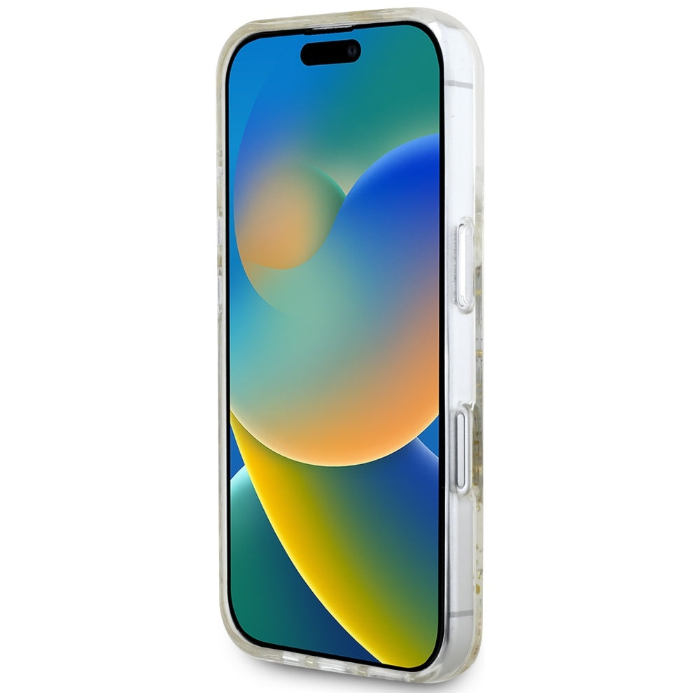 MagSafe Case for Apple iPhone 16, Guess, Resin Flowers and Glitter, Beige