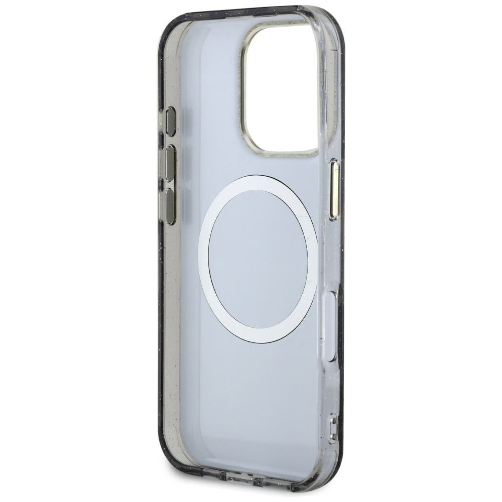 MagSafe Case for Apple iPhone 16 Pro Max, Guess, IML Metal Glitter Flowers Triangle, Black