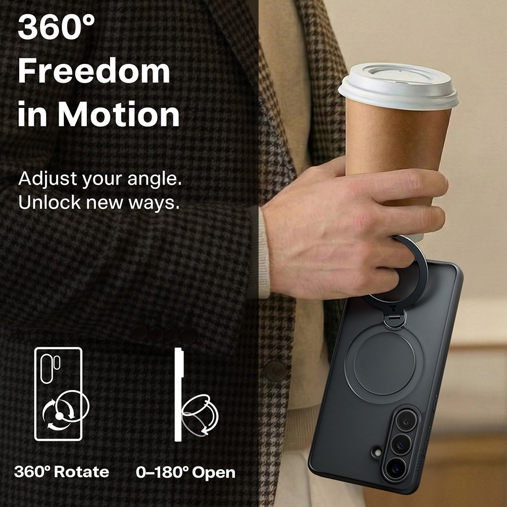 MagSafe Case for Samsung Galaxy S26 S942, Torras, Ostand Spin, Black