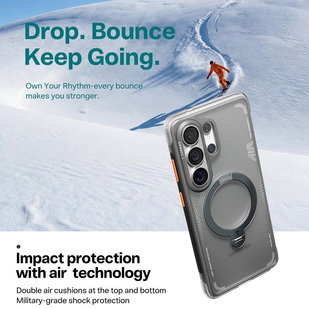 The case absorbs and distributes the impact energy through the frame with "airbag dynamic cushioning" technology.