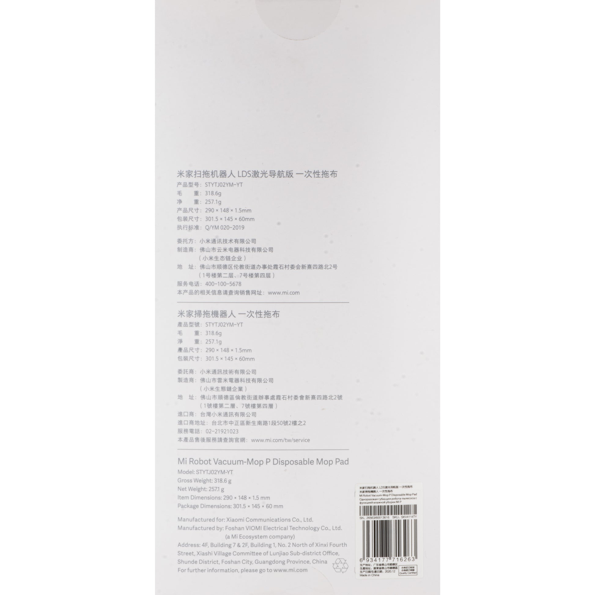 The set of cloths for Mi Robot Vacuum Mop Pro offers a perfect solution