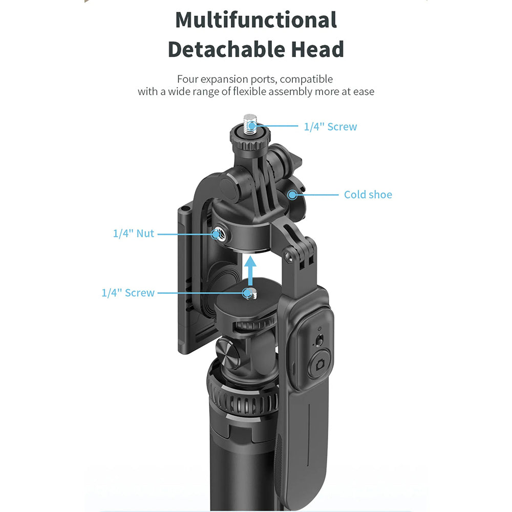 • Use the remote control to operate the selfie stick from a distance. It's so simple to control the moment of capture with the new tripod!