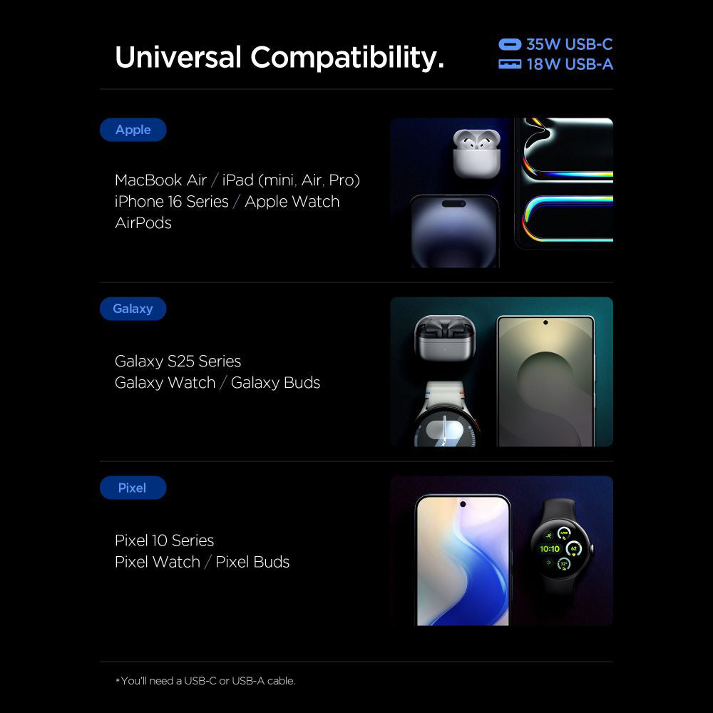 • Spigen integrates 2 distinct ports so you can simultaneously power a modern Type-C device and a compatible USB accessory.