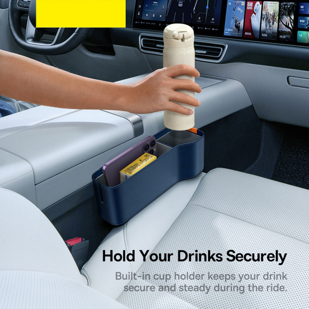 A Baseus OrganizeFun praktikus szervezője lehetővé teszi, hogy autód rendezett maradjon, és élvezd az utazás kényelmét. Két rekeszt kínál, lehetővé téve a tárgyak elkülönítését, valamint egy beépített pohártartót vagy üvegtartót, amely minimalizálja az italok kiömlésének kockázatát. Tökéletes lesz a legtöbb jármű számára, és telepítése gyors és problémamentes. A termék magas minőségű ABS anyagból készült, amely ellenáll a deformációnak. Emellett környezetbarát PU bőrt és szarvasbőr bélést használnak. Mindez tartósságot és eleganciát biztosít.