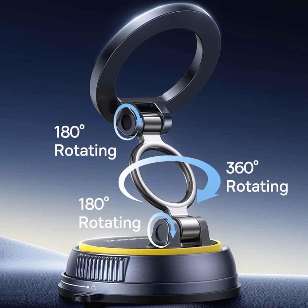 A tartó egy vákuumos alapot és forgózáras mechanizmust használ a tartás érdekében. Ez stabilan tartja a tartót a műszerfalon, csúszásmentesen.