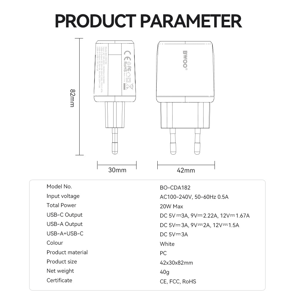 - BWOO CDA182 hálózati töltő