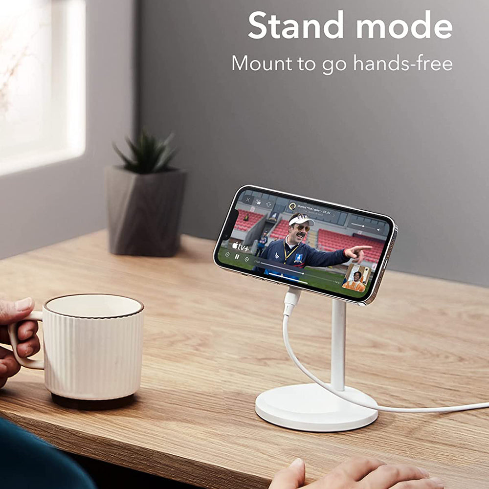 Ez a töltő egy telefonállvánnyal együtt érkezik, így könnyedén töltheted a smartphone-od, miközben videókat nézel.