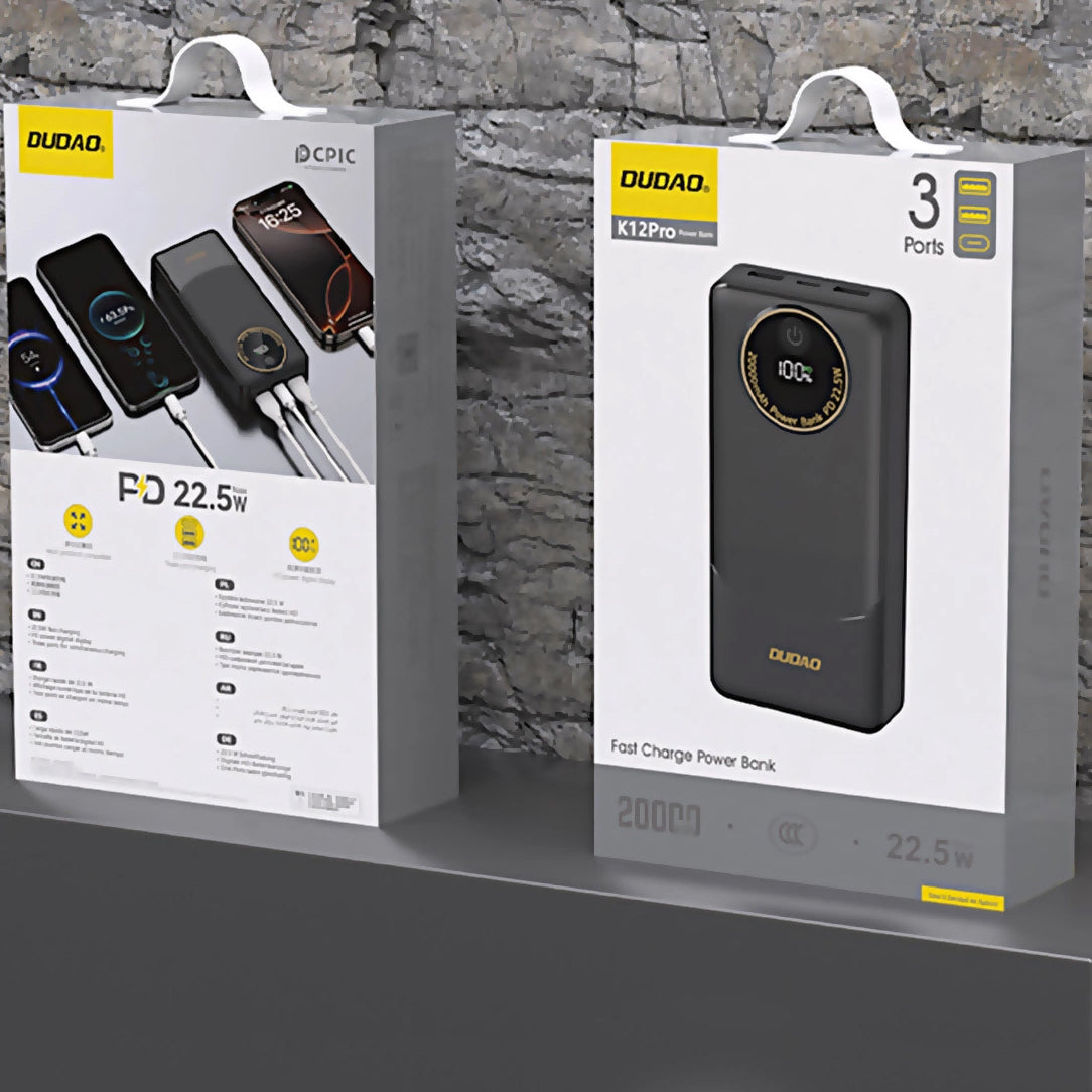A Dudao K12Pro külső akkumulátor megbízható eszköz, ideális a mobil eszközök gyors és kényelmes töltésére bármilyen helyzetben.