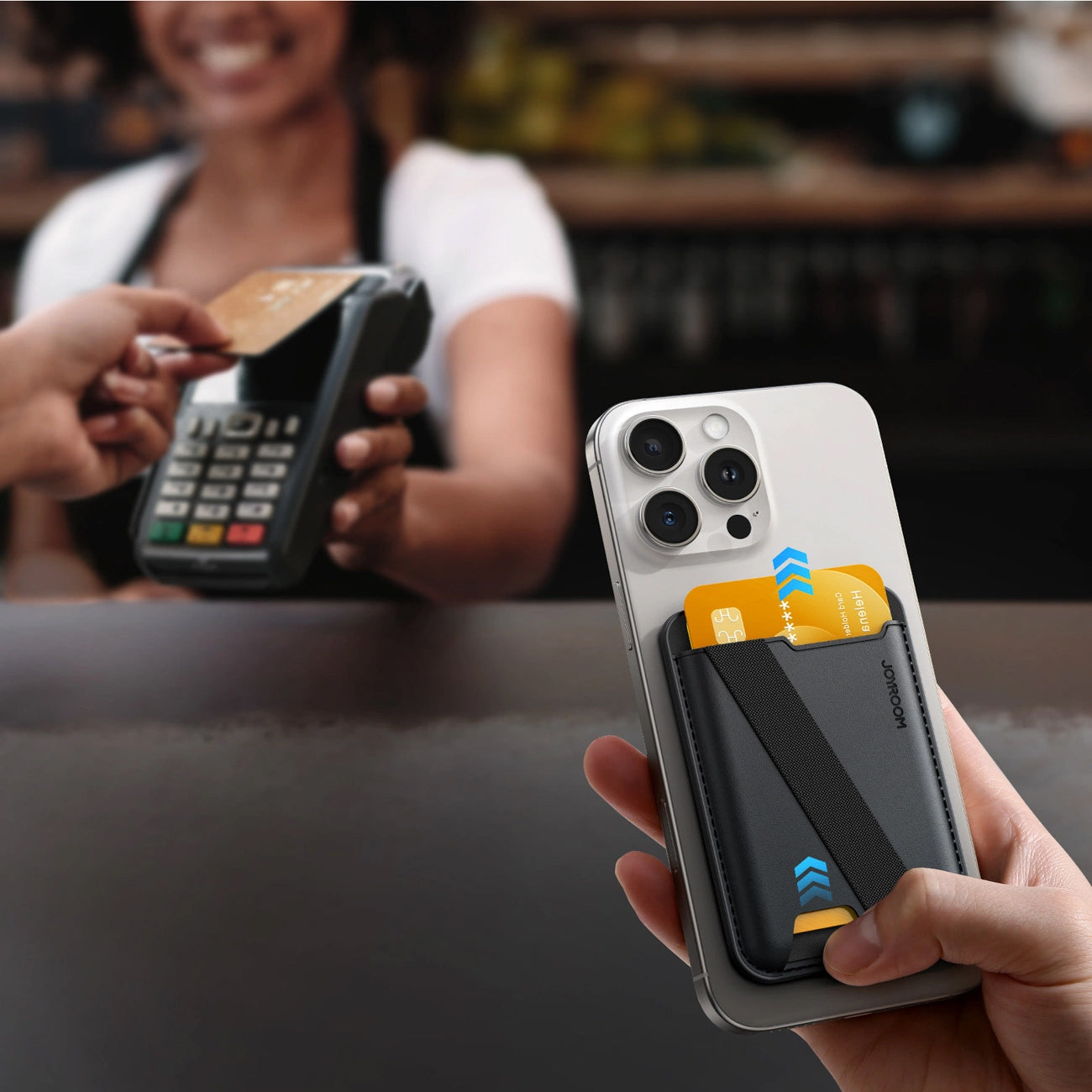 A Joyroom JR-ZS432 MagSafe pénztárca ideális kiegészítő a MagSafe-kompatibilis okostelefonokhoz, eleganciát ötvöz a funkcionalitással