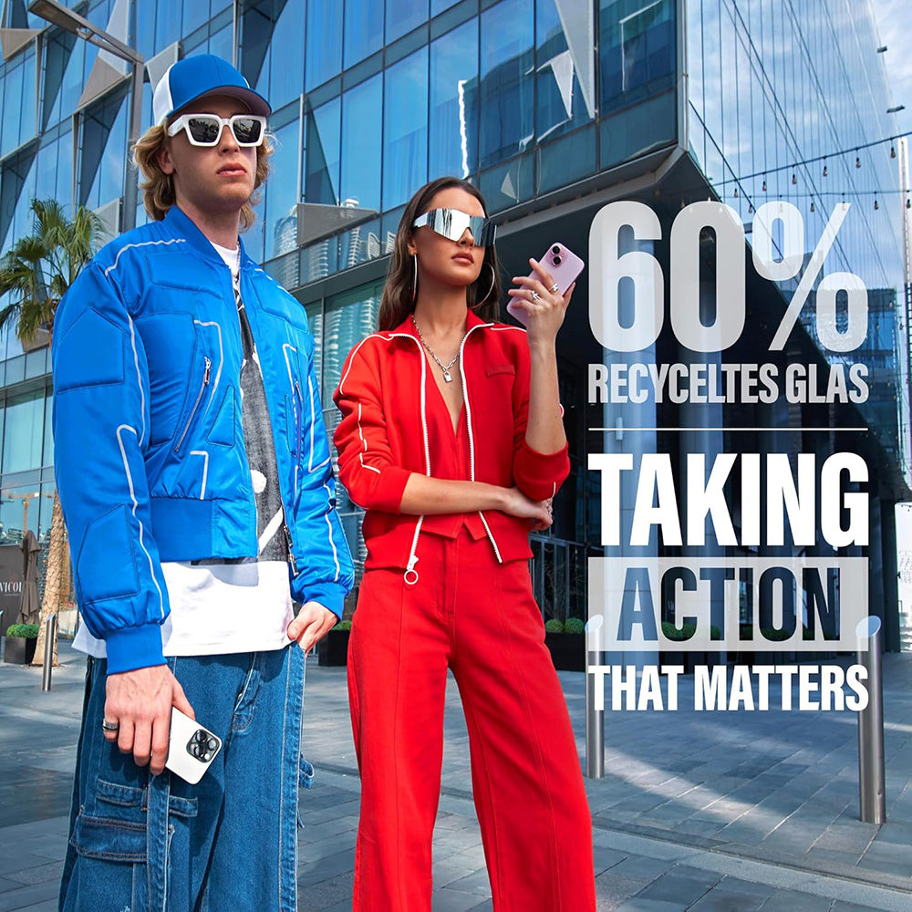 A fólia körülbelül 60% újrahasznosított üvegből készül, amelyet feldolgoznak és tisztítanak, hogy megőrizzék az optikai tulajdonságokat az eredeti üveg szintjén.