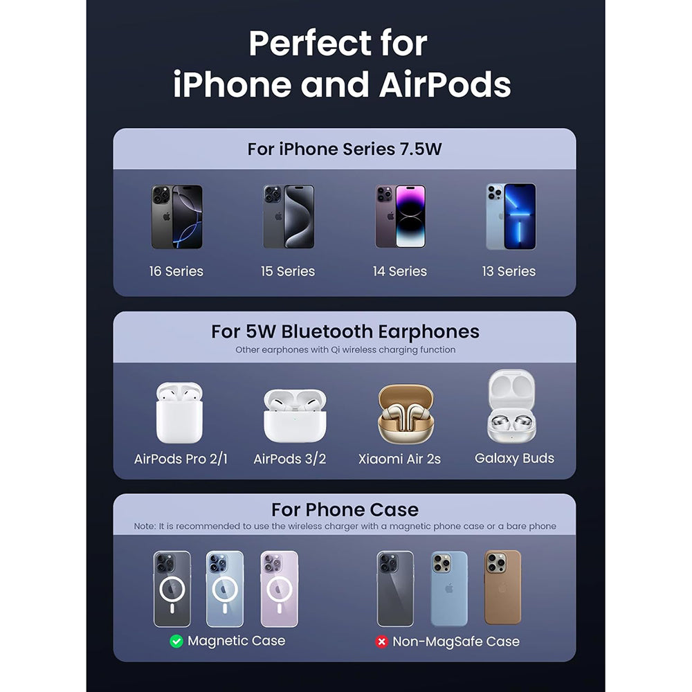 Az UGREEN W528 2in1 vezeték nélküli töltő az ideális megoldás azoknak a felhasználóknak, akik gyors, biztonságos és kábelmentes töltést szeretnének.