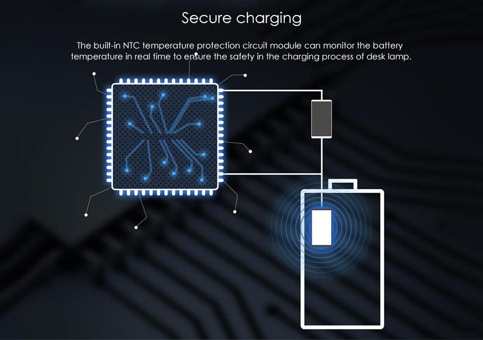 A lámpa NTC hővédelmi modullal van felszerelve, amely valós időben figyeli az akkumulátor hőmérsékletét,